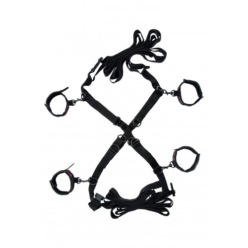 Pevne pripútajte svojho milenca k posteli a splňte jeho najhlbšie túžby so Škandálom nad posteľným krížom. Pevné popruhy sú plne nastaviteľné, aby sa prispôsobili každej veľkosti postele. Univerzálne pracky a krúžky majú otočný dizajn, vďaka ktorému je zmena polohy v horúčave otázkou niekoľkých sekúnd. Ako dominantu si zamilujete pohľad na partnera rozloženého na posteli, úplne znehybneného týmito nerozbitnými zábranami. Vaša submisívna sa bude môcť pozerať a stonať túžbou, keď ju bozkávate, dráždite a hladíte do extázy. Ako submisív si zamilujete nával dôvery svojmu partnerovi, že urobí presne to, čo chce, a čokoľvek, čo vás privedie do šialenstva. Mäkké, plyšové manžety na zápästie a členky vám zaistia pohodlie, bez ohľadu na to, ako silno krútite a zaťahujete opierky. Krížový dizajn vás úplne vystaví obdivnému pohľadu vášho milenca a žiadostivým rukám, čo zaisťuje maximálne potešenie. Vaša dominantná osoba môže utiahnuť popruhy, aby roztiahla vaše nohy tak ďaleko od seba, ako si trúfate, čím odhalíte všetko a získate prístup ku všetkým vašim najcitlivejším miestam. Mimoriadne sexi vpád do sveta hrania rolí a sľubuje jedinečný a nezbedný večer hry pre dominantnú aj submisívnu partiu.